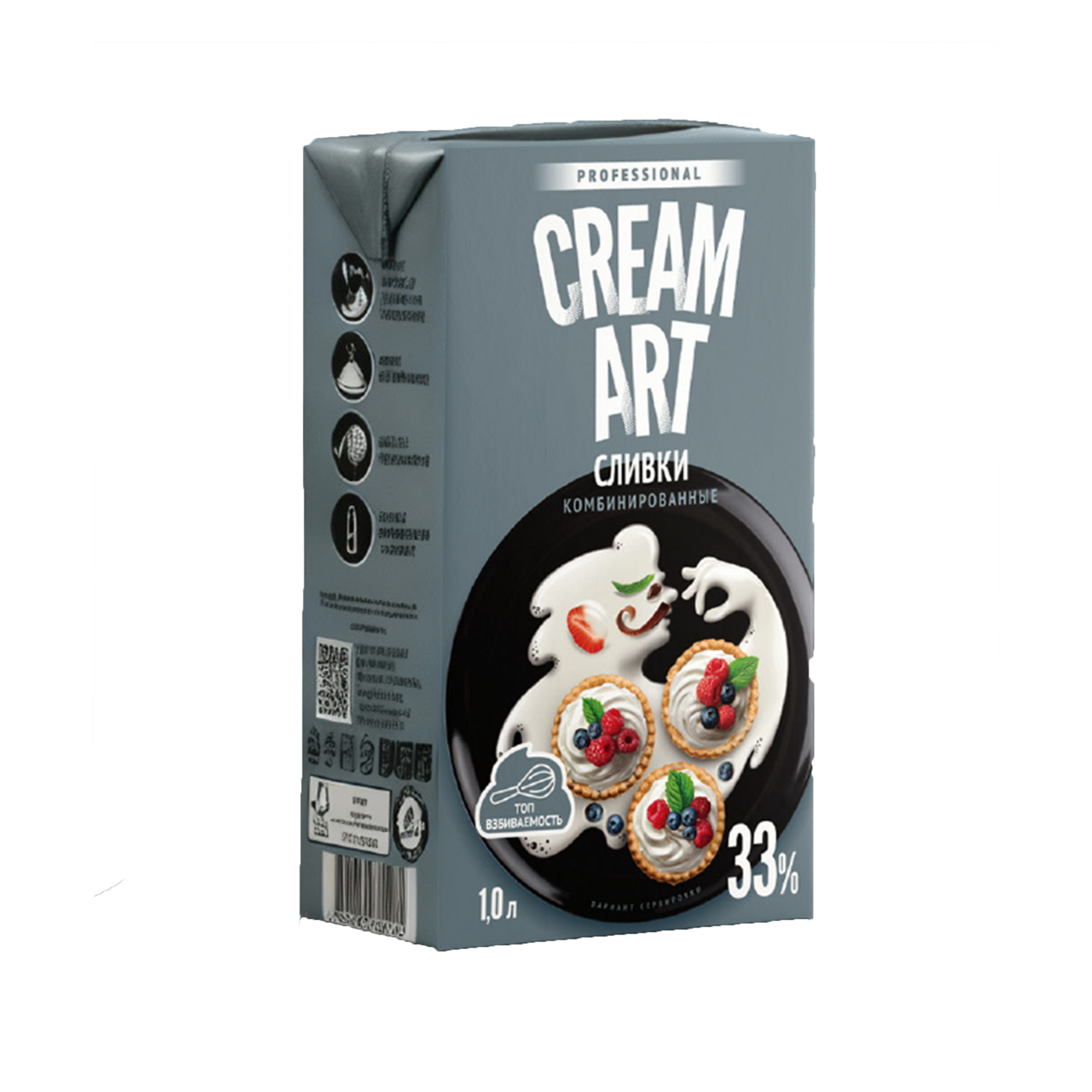 После заморозки продукт сохраняет вкус и текстуру, а готовые десерты остаются свежими, аппетитными и стабильными до 5–7 дней, что делает их идеальными для кейтеринга и доставки. При этом CREAMART 33% выгоднее традиционных молочных сливок и позволяет снизить себестоимость кремов за счёт комбинирования даже с нежирными молочными сливками.
